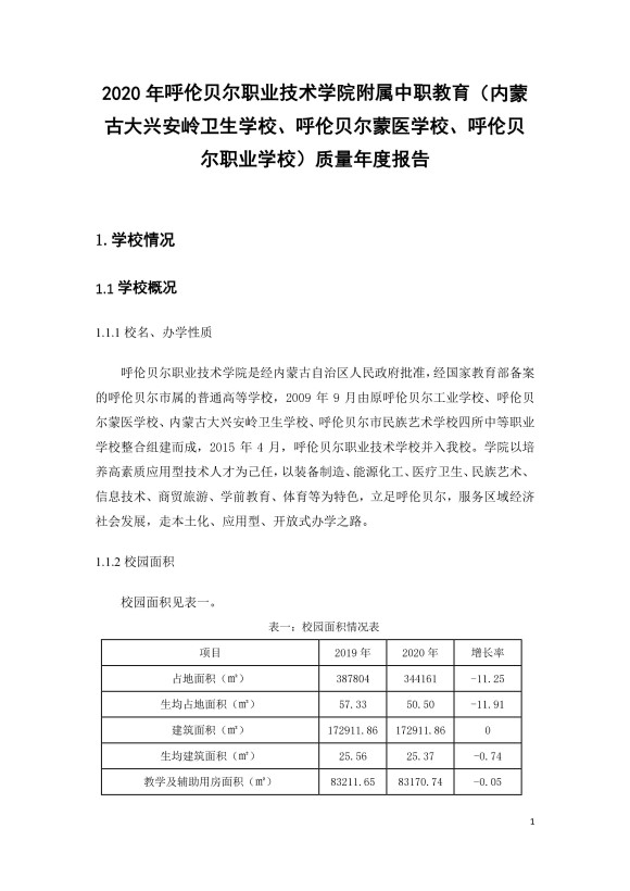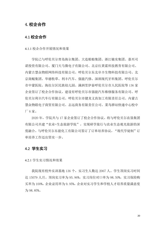 呼伦贝尔职业技术学院附属中职教育学校中等职业教育年度质量报告(2020)