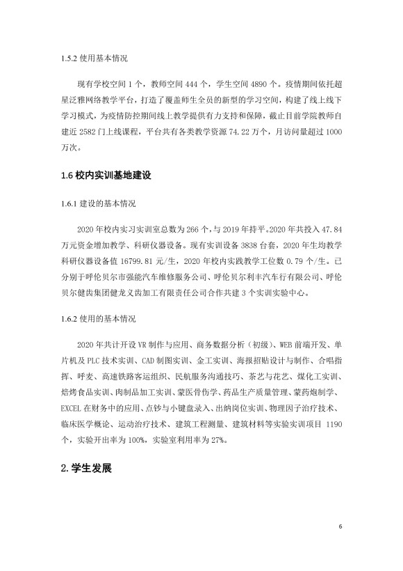 呼伦贝尔职业技术学院附属中职教育年度质量报告(2020).docx
