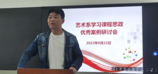 8月22日下午,在求新楼211教室,艺术系组织开展课程思政专题会议,艺术系主任特木其勒主持会议,教科研办及青年教师团队参加此次会议。