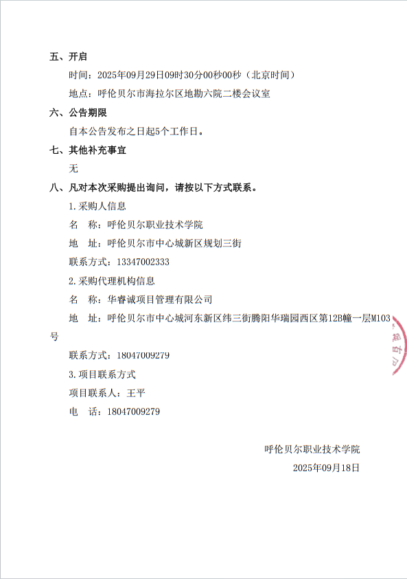 呼伦贝尔职业技术学院设备采购项目询价结果公示