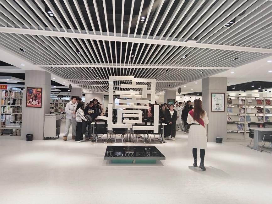 在图书馆专业讲解员的引导下,同学们开启了一场沉浸式的“知识探秘”之旅。从充满童趣的少儿馆出发,途经实时呈现数据的智慧屏,依次走进静谧严谨的自然科学文献区、充满人文关怀的老年人阅览区、飘散油墨清香的期刊报纸阅览区;随后驻足“党史学习教育读书角”,重温红色经典;步入“阅见呼伦贝尔”特色展区,领略呼伦贝尔文化的深厚魅力,最后徜徉于社会科学与蒙古文献的丰富馆藏中,感受知识的广博与多元。
